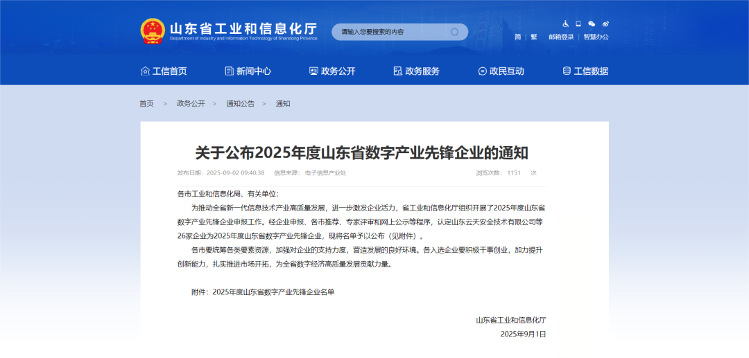 凯发K8国际AG荣获2025年度山东省数字产业先锋企业